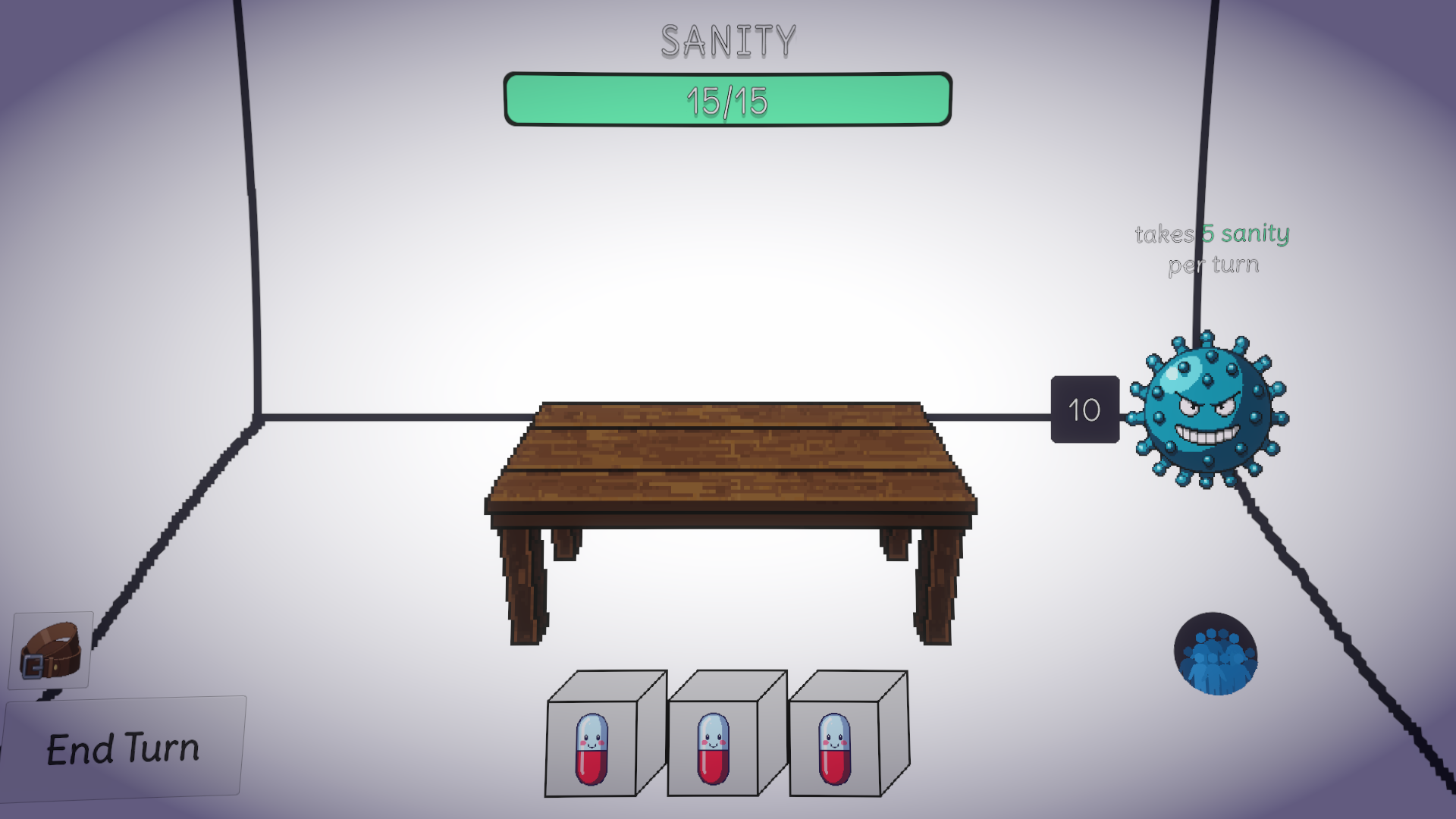 Build your deck of pills and fight with your body. Or surrender and survive.